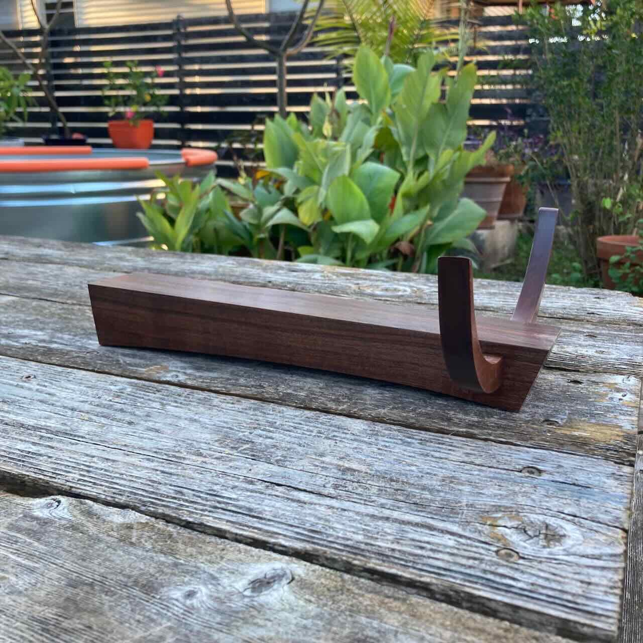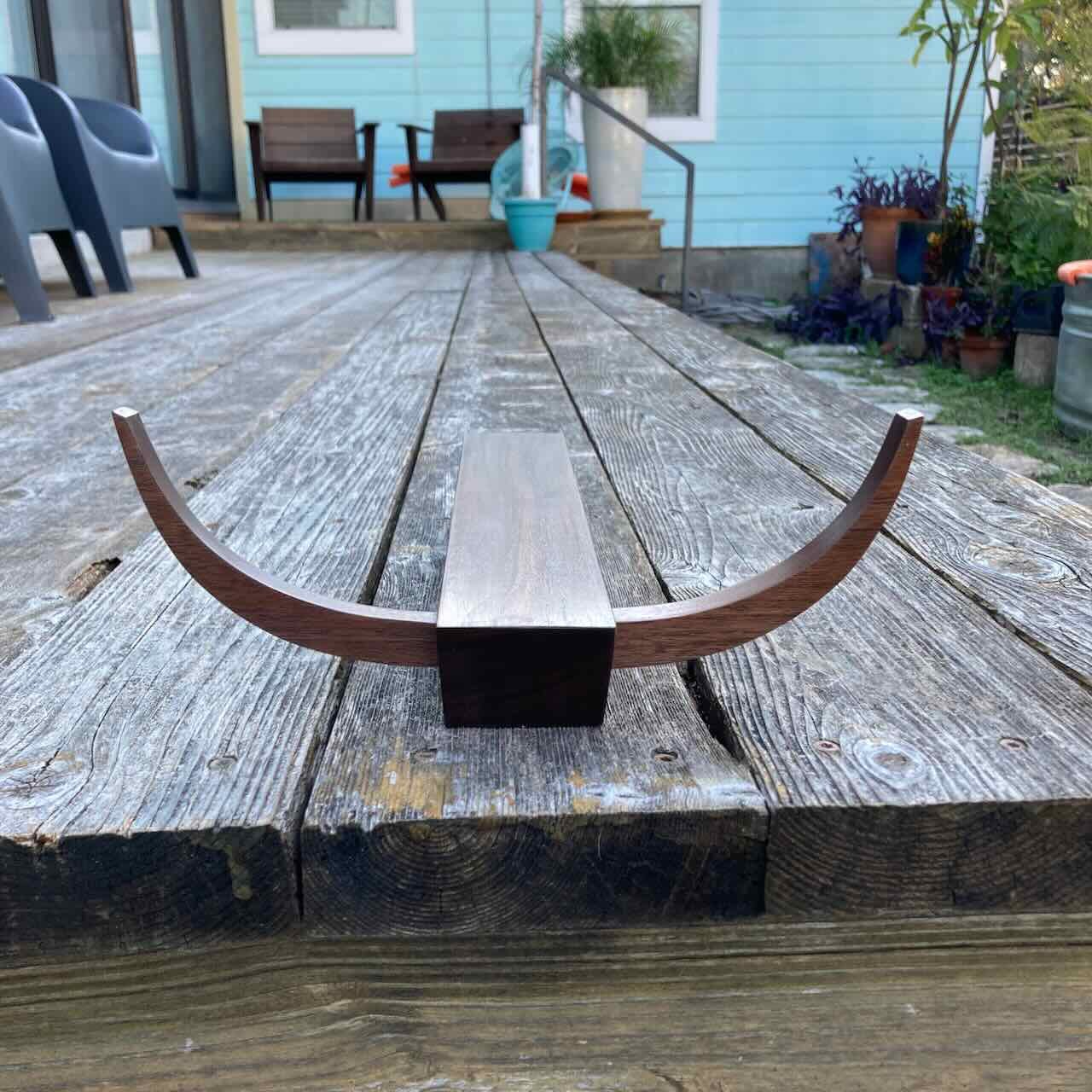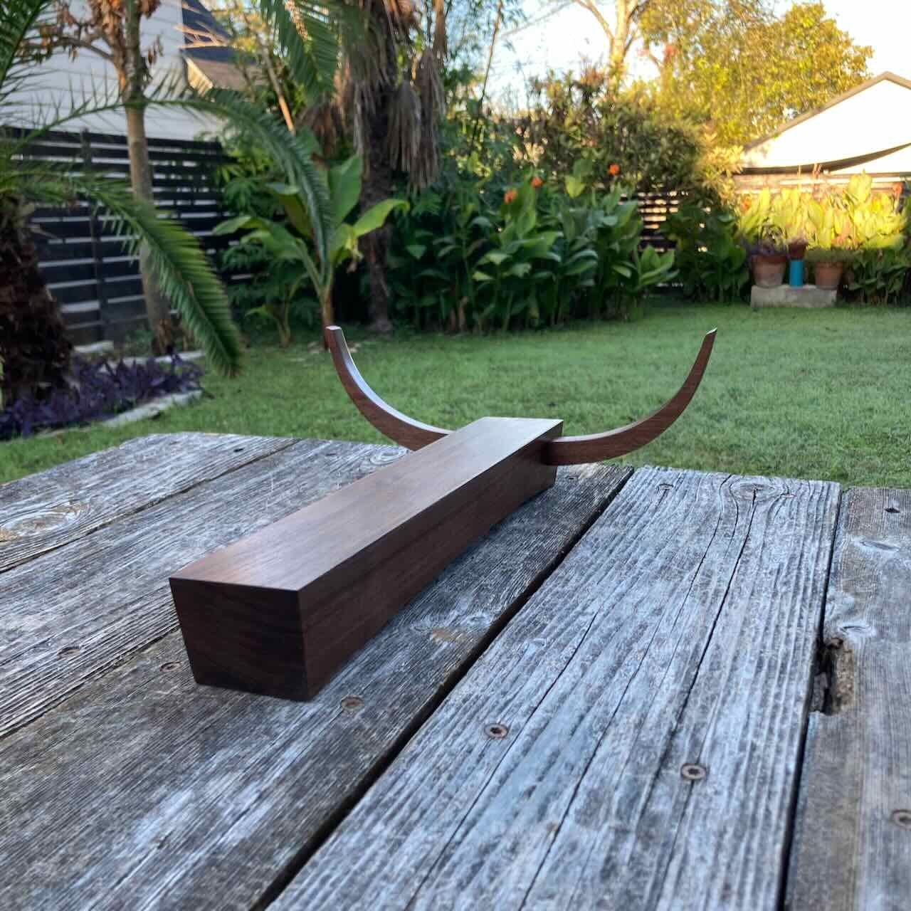 Midcentury-style abstract longhorn carving by avenueEmodern. Nice walnut figuring on this and cool muscle car and Dali vibes. Measures approximately 13.5” long x 10” wide x 4” tall.